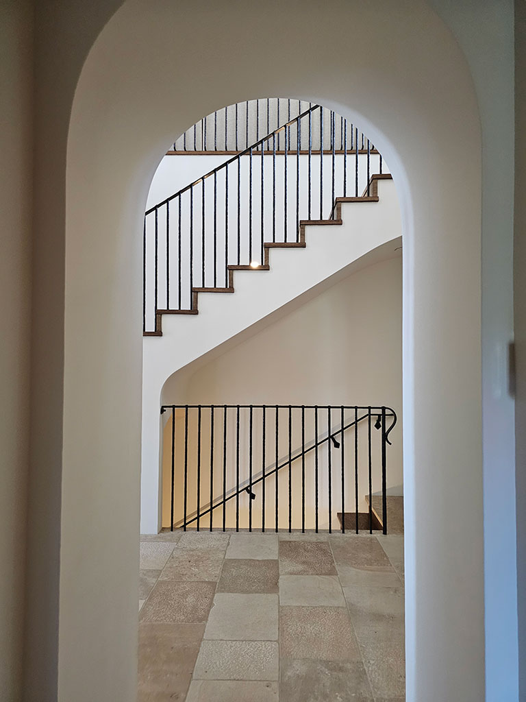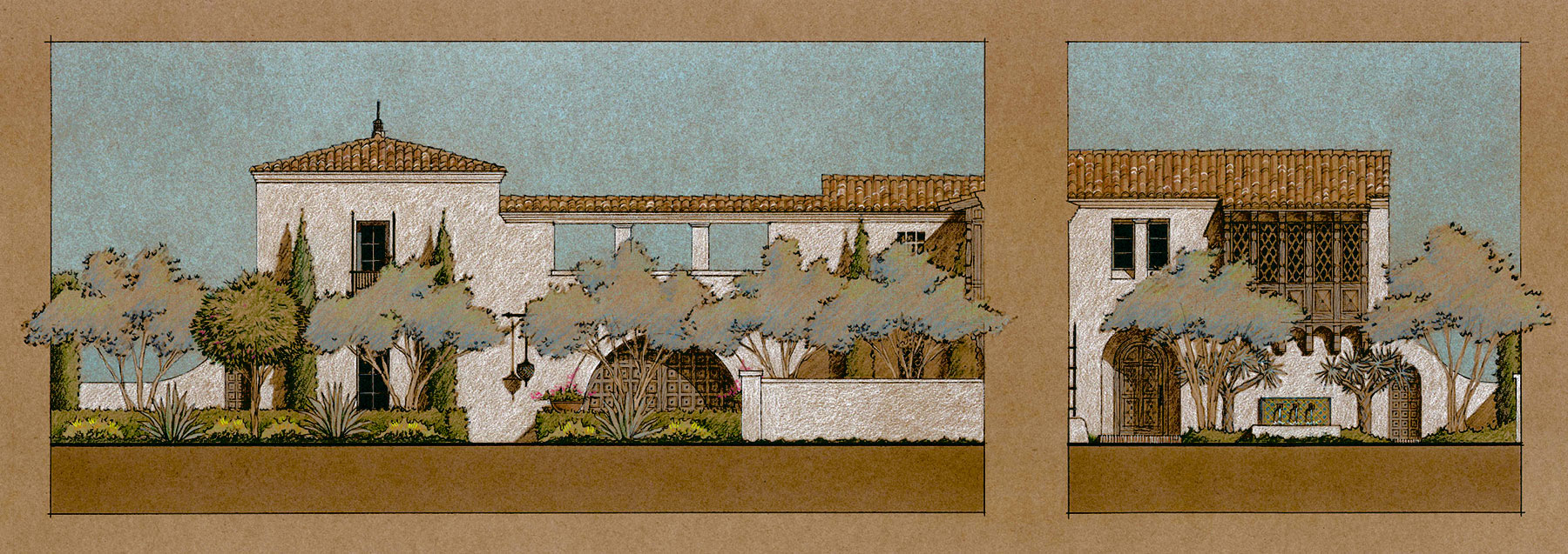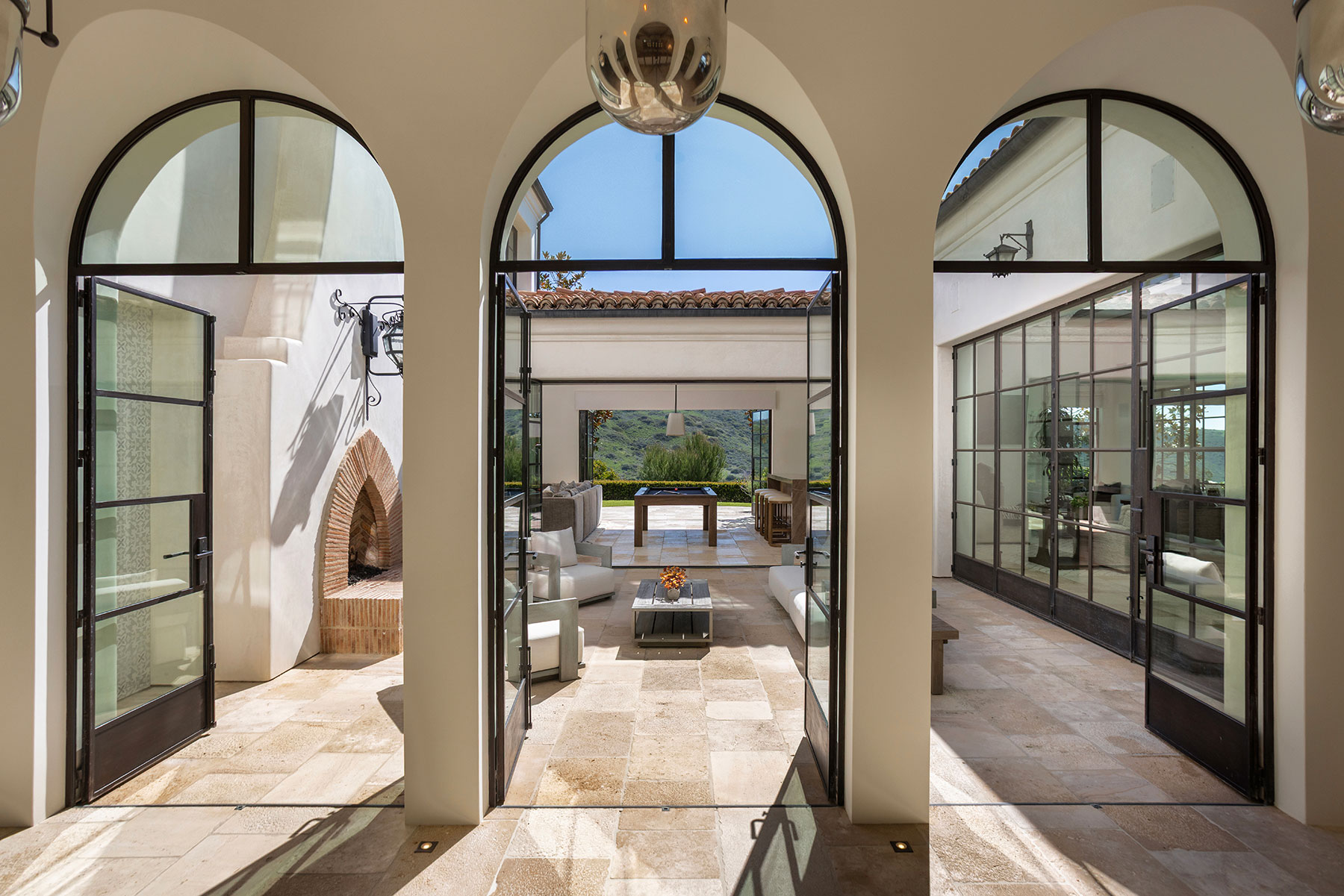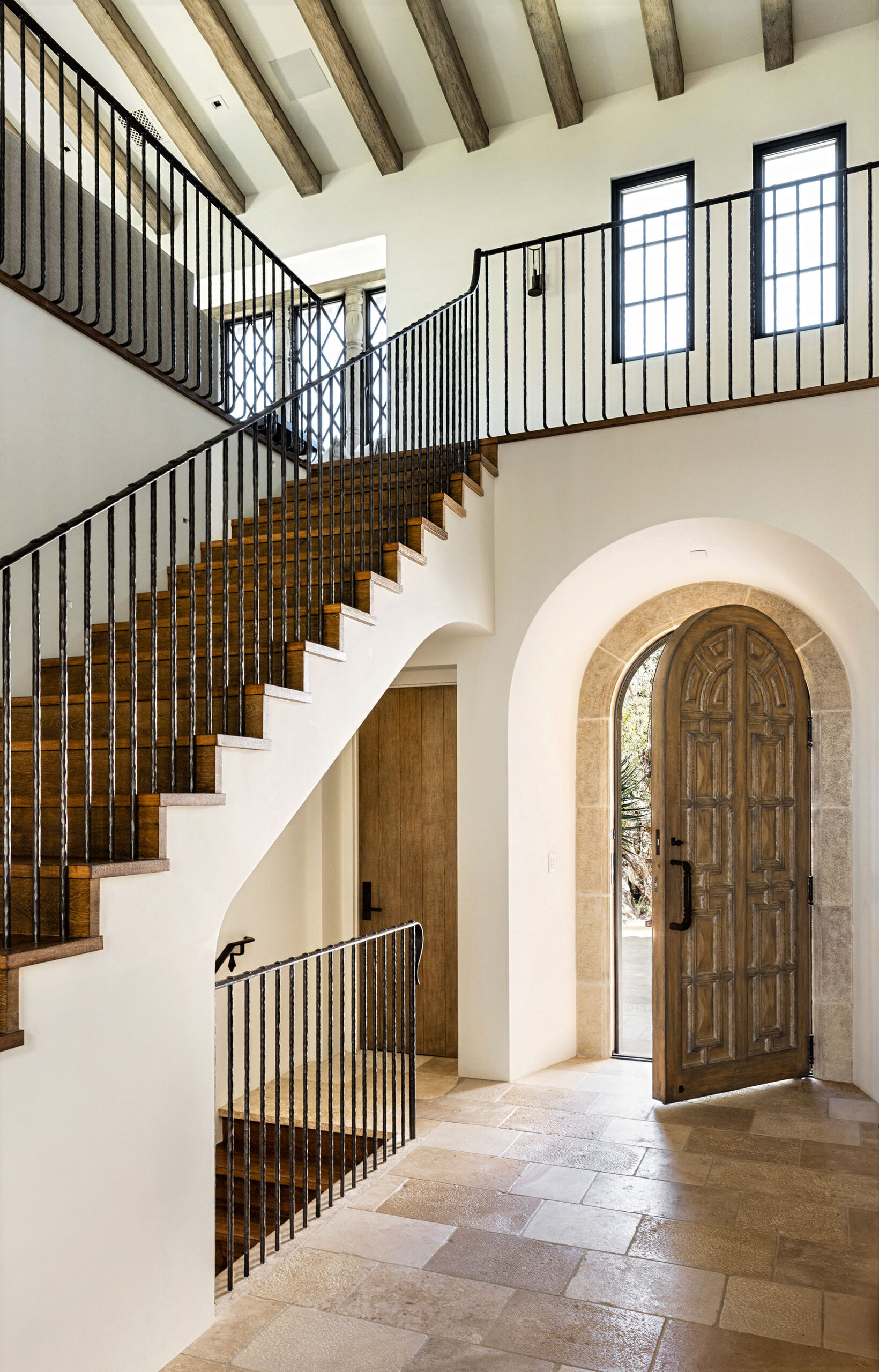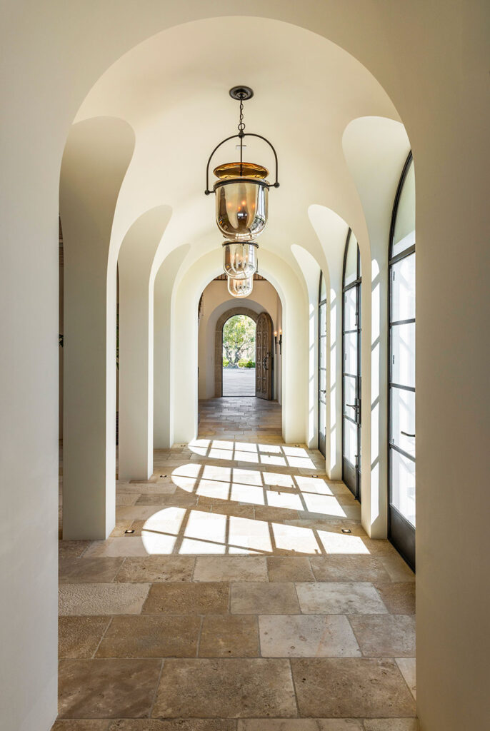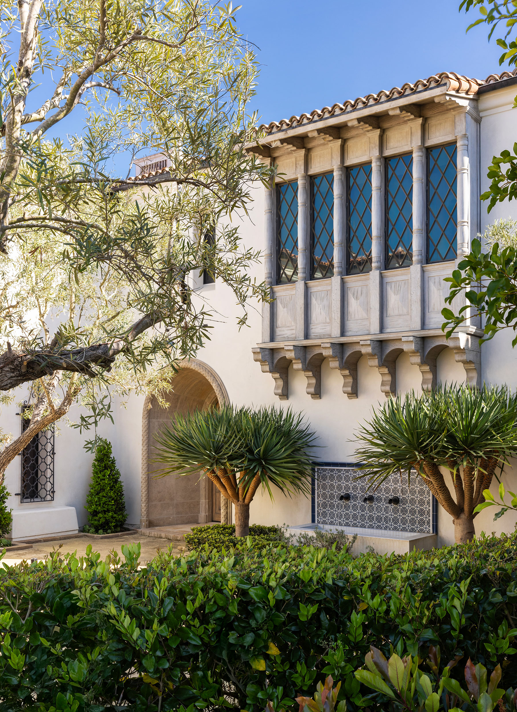This Spanish Colonial Revival estate is sited at the end of a large neighborhood cul-de-sac setting up a unique opportunity to showcase the home’s street appeal. The bridge and arched wood door disguise a five-car garage motor-court beyond. one of the garages houses a car lift leading to an eleven-car subterranean garage. The facade is inspired by some of the beautiful austere whitewashed stucco homes adorned with incredible iron, stone, tile and wood details built in the roaring 20’s in the Los Angeles and Santa Barbara areas. The main rooms of the home envelop a wonderful central courtyard with an outdoor fireplace. All the primary living/entertainment spaces abut the courtyard that provides the ‘light and energy’ of the home. The lot sits 400’ above sea level presenting majestic views of the Pacific Ocean, the Point at El Moro Beach and coastal foothills, the plan is set up to capitalize and enhance the stunning vistas from almost every room. We owe a supreme debt of gratitude to our wonderful clients for trusting our vision and intuition and for supporting our vision throughout the entire project.