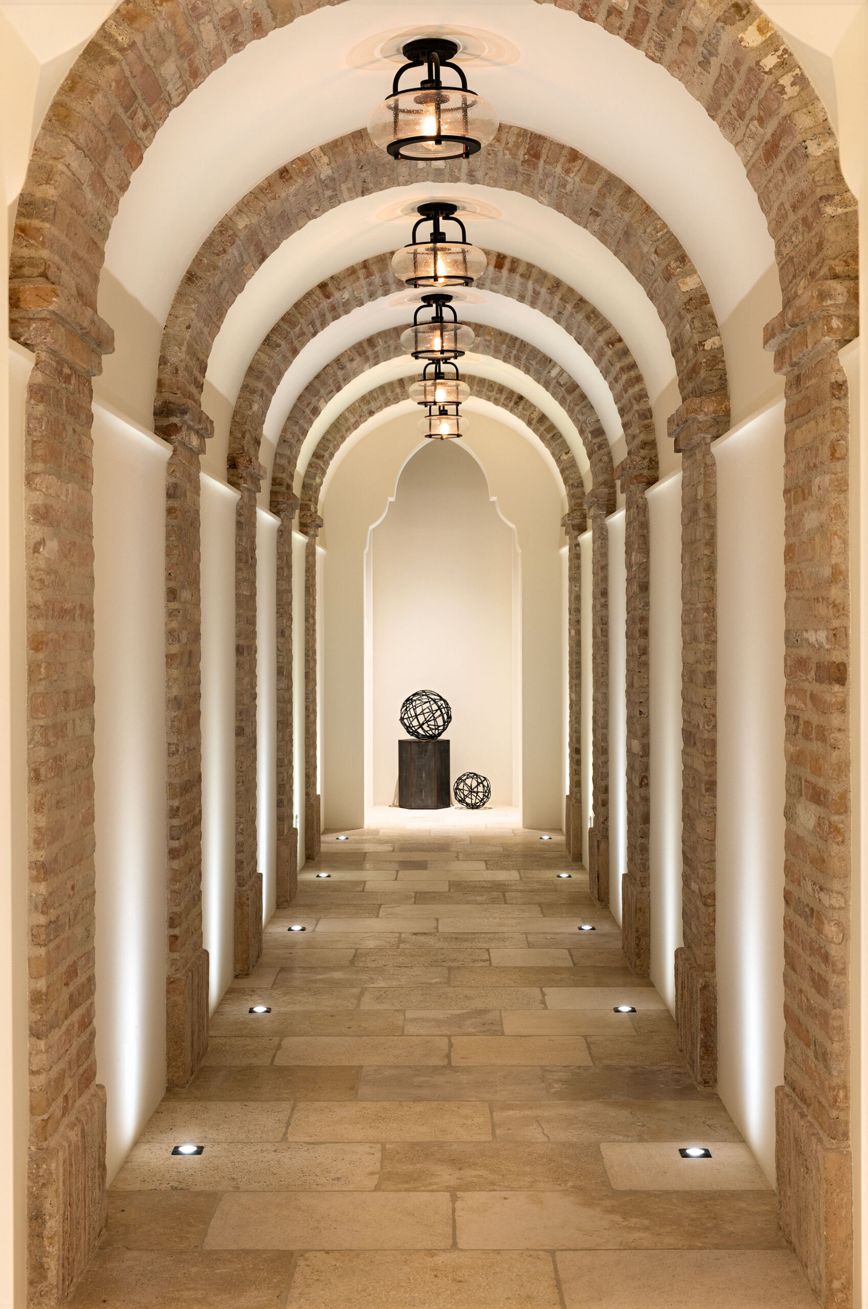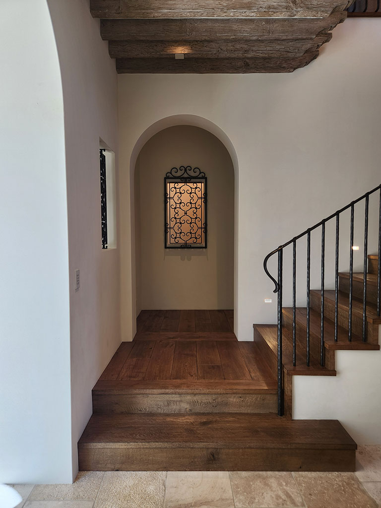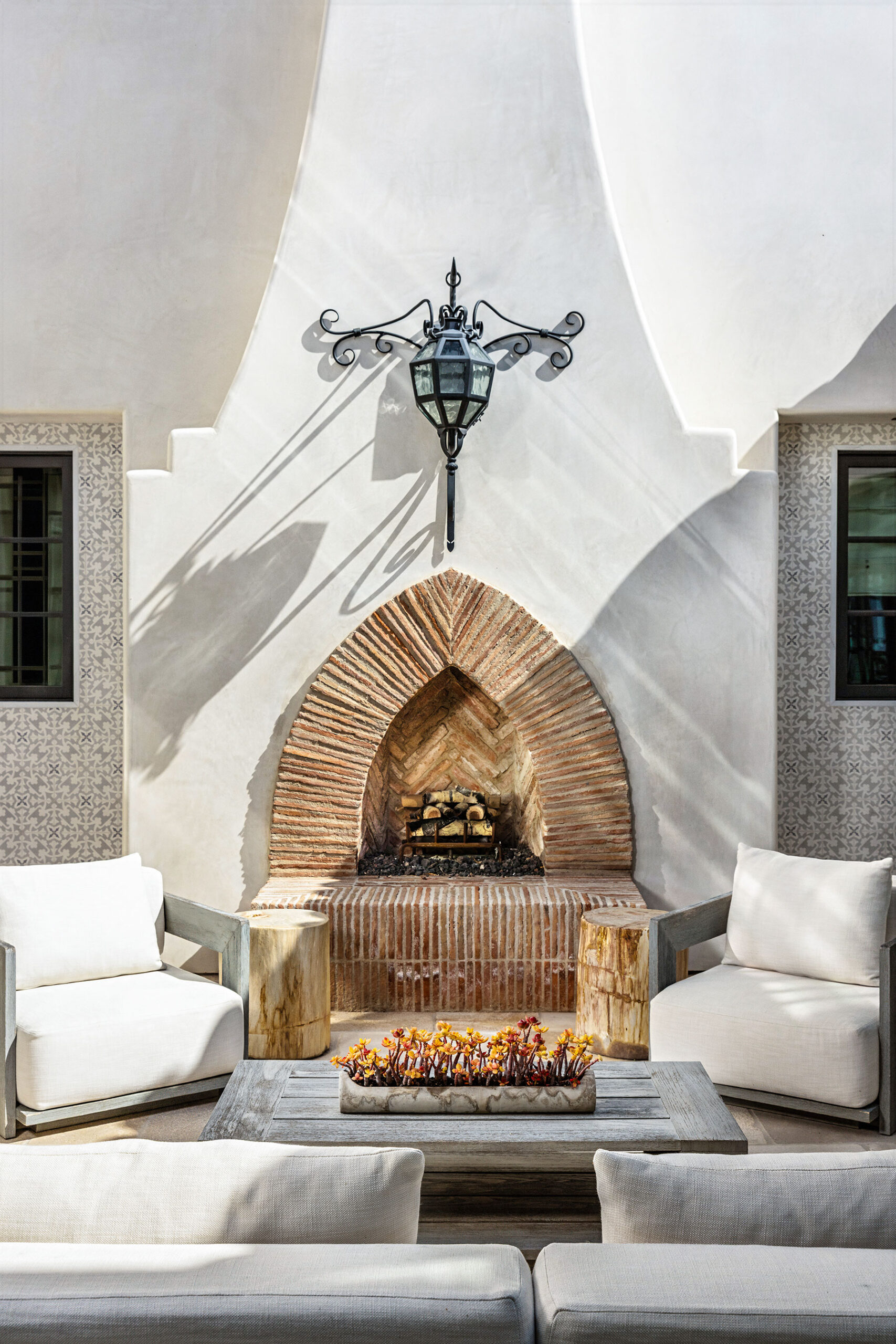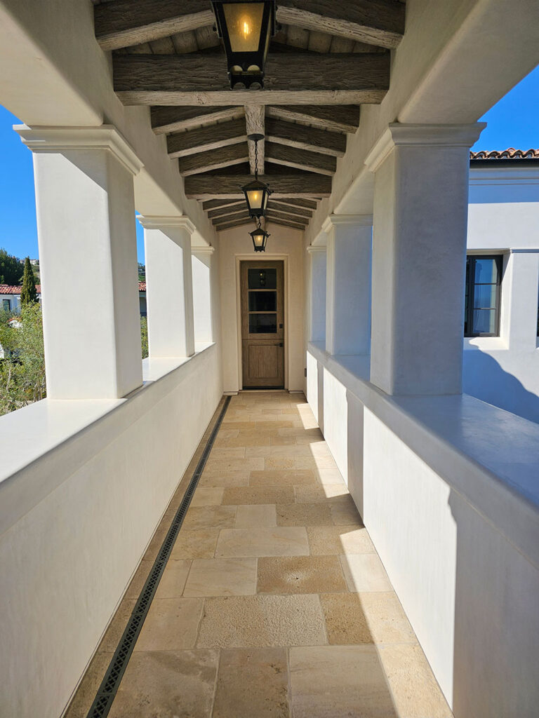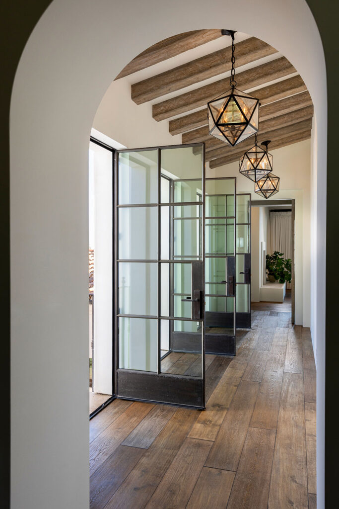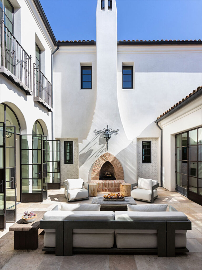 This Spanish Colonial Revival estate is sited at the end of a large neighborhood cul-de-sac setting up a unique opportunity to showcase the home’s street appeal. The bridge and arched wood door disguise a five-car garage motor-court beyond. one of the garages houses a car lift leading to an eleven-car subterranean garage. The facade is inspired by some of the beautiful austere whitewashed stucco homes adorned with incredible iron, stone, tile and wood details built in the roaring 20’s in the Los Angeles and Santa Barbara areas. The main rooms of the home envelop a wonderful central courtyard with an outdoor fireplace. All the primary living/entertainment spaces abut the courtyard that provides the ‘light and energy’ of the home. The lot sits 400’ above sea level presenting majestic views of the Pacific Ocean, the Point at El Moro Beach and coastal foothills, the plan is set up to capitalize and enhance the stunning vistas from almost every room. We owe a supreme debt of gratitude to our wonderful clients for trusting our vision and intuition and for supporting our vision throughout the entire project.